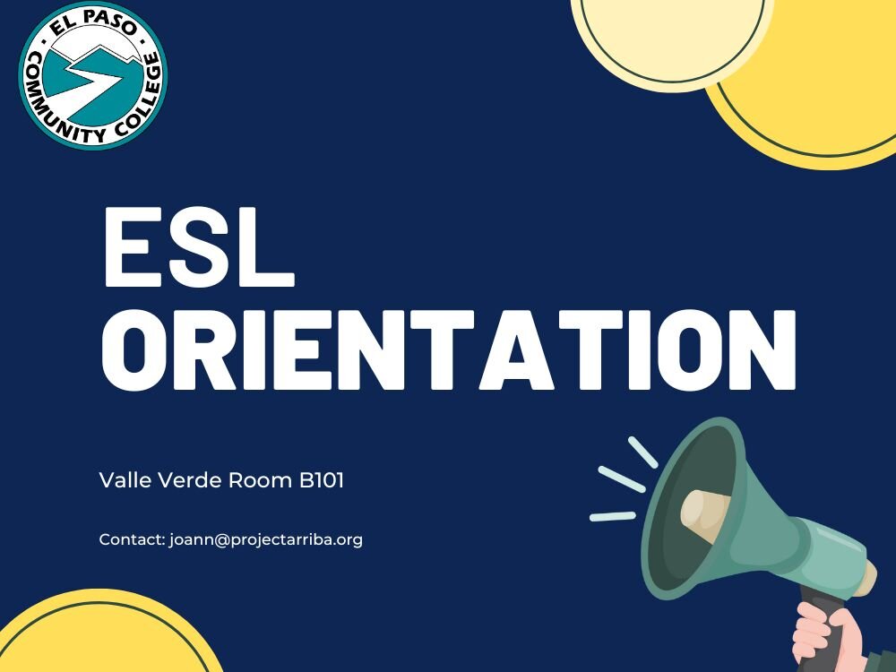 Project ARRIBA is sponsoring ESL classes at EPCC. Come to the orientation to find out more information!